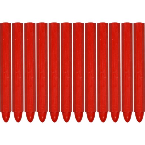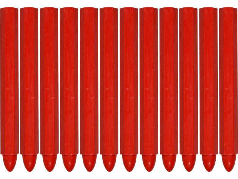 Technical chalk / fat / for marking on metal, wood, stone, concrete, glass, rubber. Red colour. Dimensions approx. 120 x 12 mm. OPK. 12 pcs for marking, writing on various materials, e.g. gum, metals, wood, brick stone, etc. Technical chalk red color opk. 12 pcs