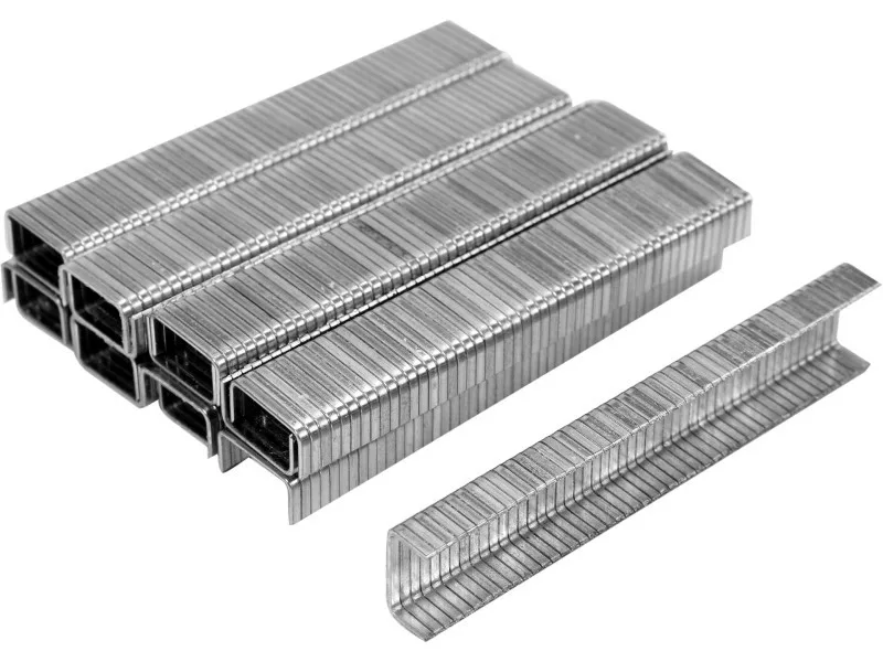 Upholstery staples designed for various types of staplers. Made of steel. Intended for quickly joining different materials such as fabrics and wood in upholstery work.
