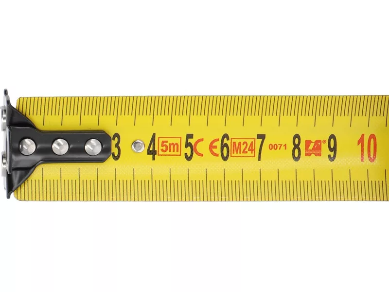 Coiled measure with steel tape of 5 meters in length. Made in class II measurement accuracy. Equipped with a short lanyard, which can be conveniently passed around the wrist or hang the measure on it.