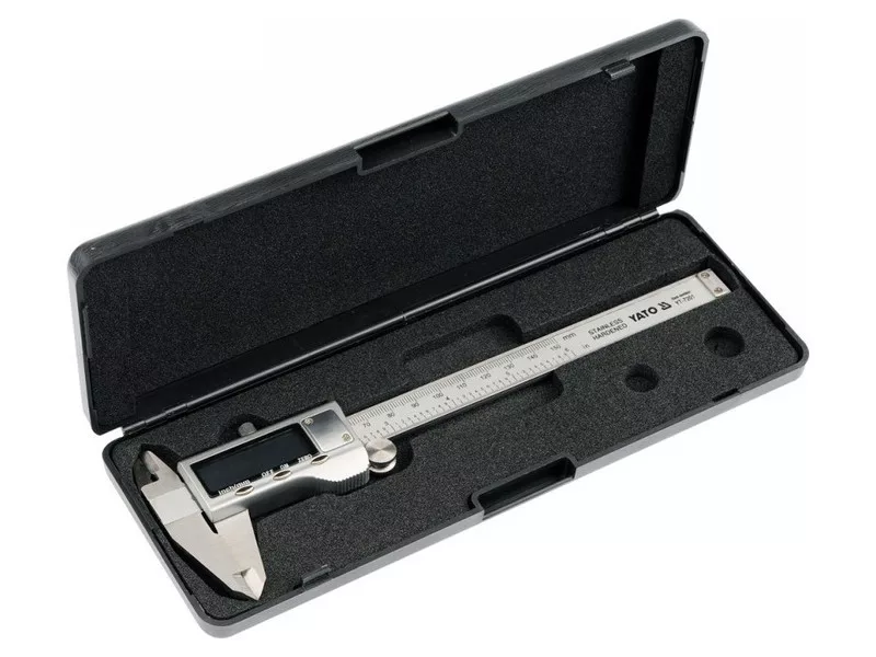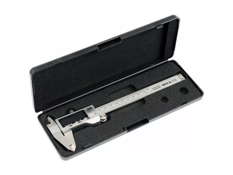 YATO electronic caliper made of stainless steel, with an accuracy of 0.02 mm and a measuring range of 0-150 mm.