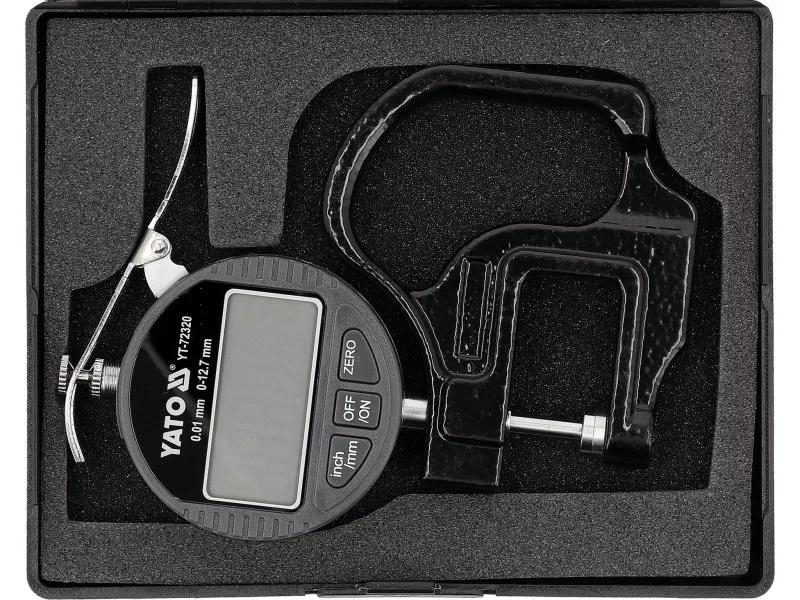 An electronic thickness gauge with an accuracy of ±0.01 mm is a precise measuring tool designed for determining the thickness of various materials, including metal sheets, plates, sheets made of metal, paper, plastics, or glass. It is used in workshops, measurement laboratories, and quality control, where the accuracy and repeatability of measurements are important.