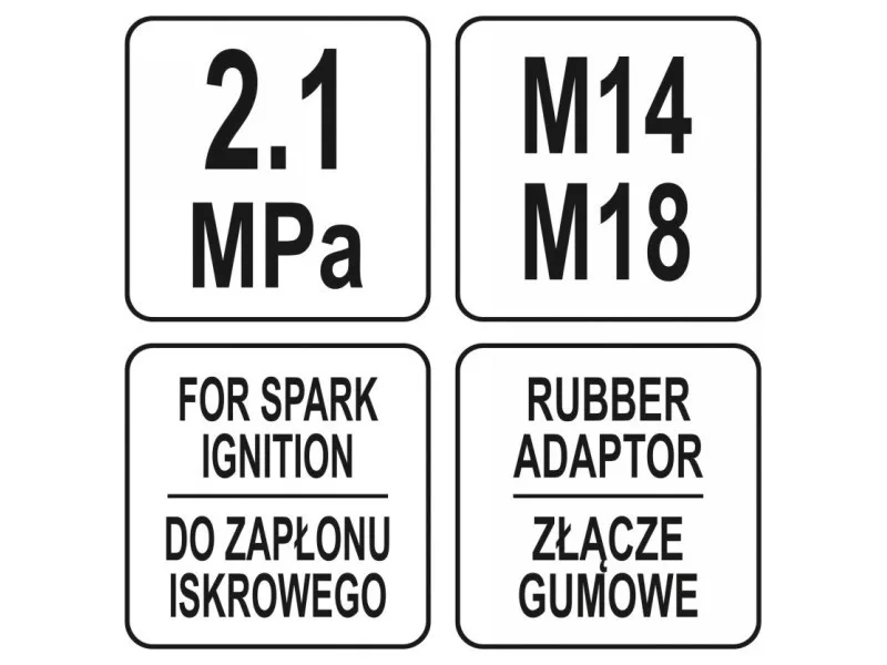 | Application | for measuring compression pressure, for spark ignition, for all types of engines |