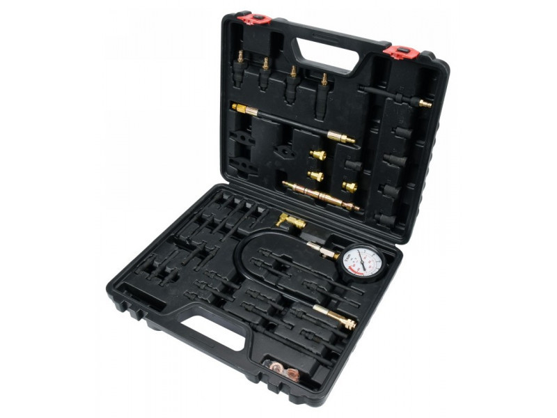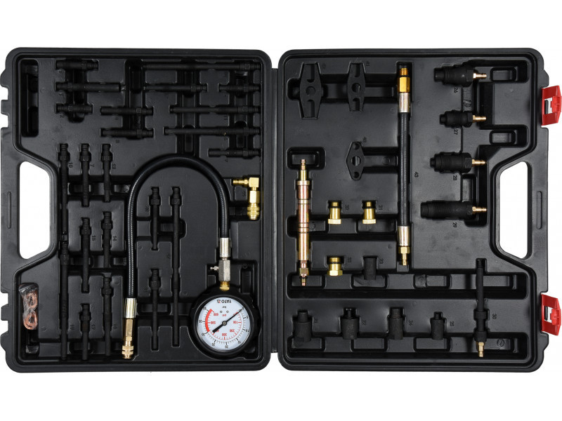 Universal set for measuring compression pressure in both gasoline, and diesel engines. Measurement can be done through glow plugs or through the injector.