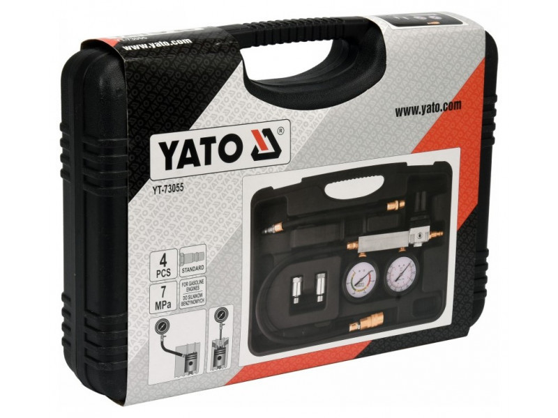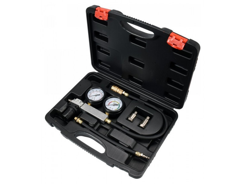 by supplying compressed air to the cylinder and determining the percentage of pressure drop caused by cylinder leaks. It detects, among other things. piston ring damage, damage to the intake or exhaust valve, damage to the head gasket.