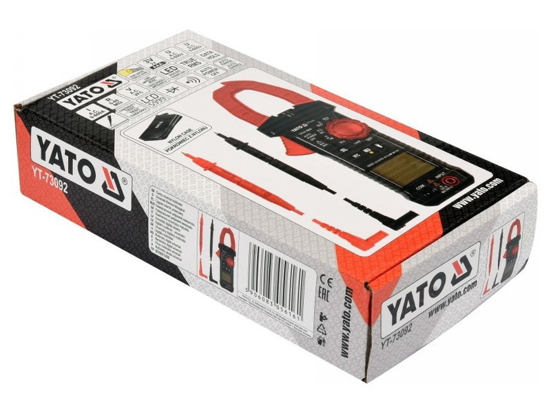 Universal clamp meter YT-73092 with automatic range for most indications allows you to perform basic and advanced electrical measurements. The meter is equipped with measuring clamps, which allow you to measure the AC current in a single wire using the inductive method. The measurement is carried out without disconnecting the circuit or disconnecting it from the power source, and makes it possible to measure a much higher current than conventional electrical meters.