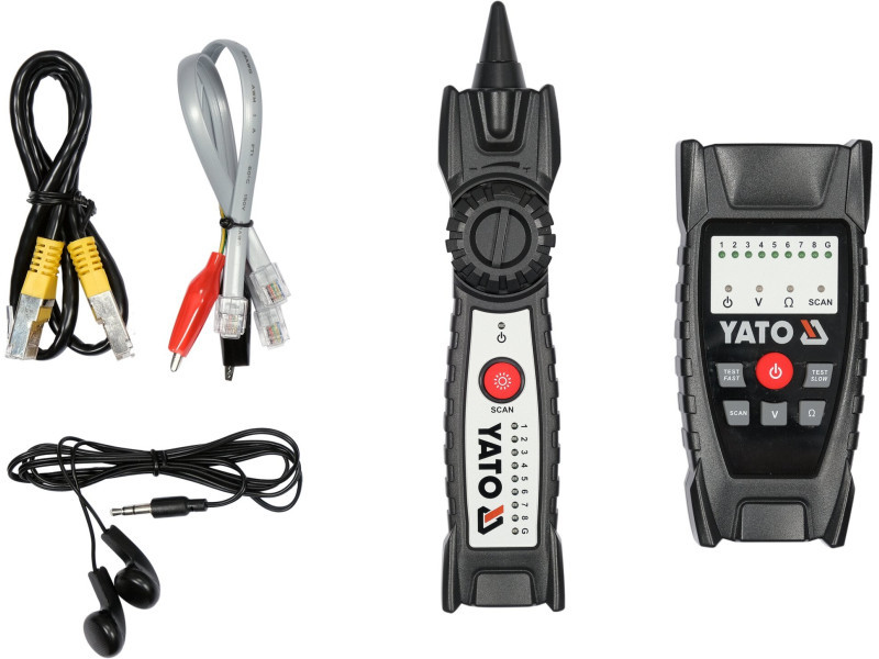 Cable Locator YT-73137 is a wiring inspection and locating device. It is used to determine the route of a cable in a wall, identify a network cable in a server room, locate a break in a car's electrical system, verify the order of connections in an RJ-45 cable, and check the condition of a telephone line.