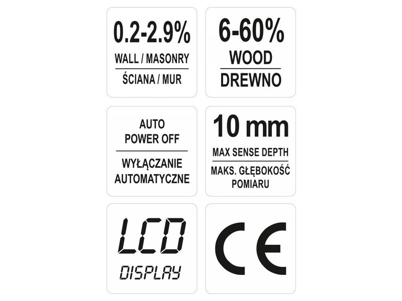 | Application | humidity control of plasters, floor screeds and construction boards and wood during construction or renovation works, checking the moisture of wood for fireplaces, smokehouses and stoves |