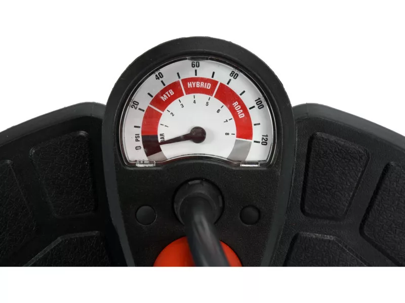 Hand pump post pump with a maximum pressure of 8 bar. It has a universal head for pumping car and bicycle valves.