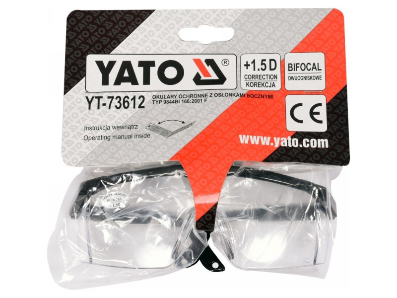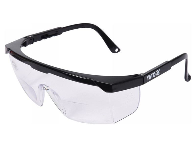 Protective glasses YT-73612 with magnifying lenses are designed for eye protection in manual and mechanical work such as grinding, drilling, chiseling, etc.