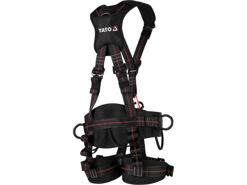 The YT-74218 lap belt harness can be used both as part of a fall protection system and for suspended work. The harness is one of the lightest in its class thanks to, among other things, the aluminum-made attachment points. Mesh material in the shoulder, hip and thigh straps and EVA foam fillings improve comfort, air circulation and a snug fit. When worn correctly, the harness must fit tightly around the torso, waist and thighs, so that, together with the dedicated attachment point, it can evenly distribute the forces on the body during a fall or to work comfortably in suspension.