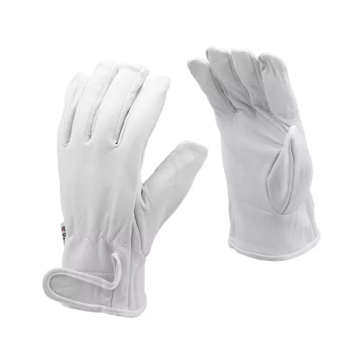Lightweight work gloves made entirely of soft natural leather. They will prove useful for work in the garden, for handling dirty elements, as well as in performing work where high precision grip is not required.