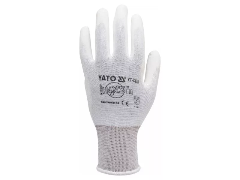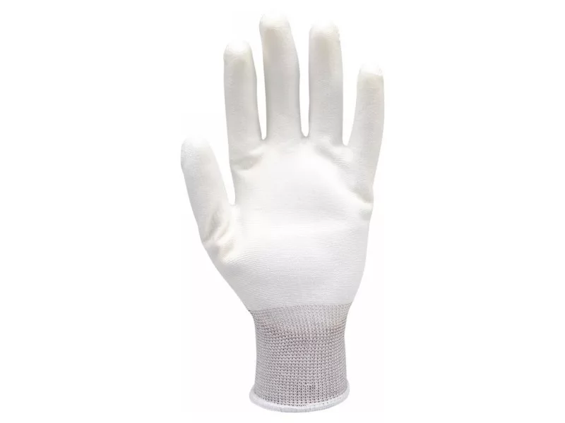 Protective work gloves made of white nylon, coated in the grip part with white polyurethane. Thicker than usual coating layer and high quality polyurethane provide the highest abrasion resistance according to EN 388. Seamless construction of high-quality nylon means increased tear resistance and retention of flexibility for a longer period of time. The fine 15G stitch, or 15 stitches per inch, means lower weight and even better adhesion to the hand.