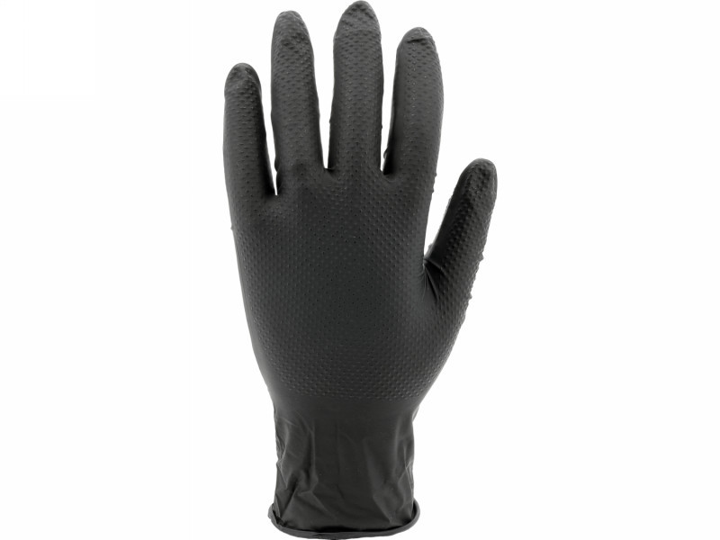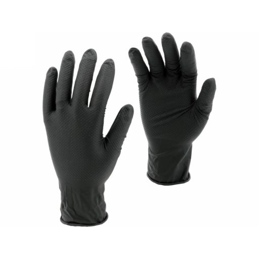 Nitrile gloves with a diamond texture designed for tasks requiring high mechanical and chemical resistance. Made of high-quality nitrile, they provide effective hand protection while maintaining good tactile sensitivity and precision of movements. The flexible material fits well to the hand, ensuring comfort during extended use.