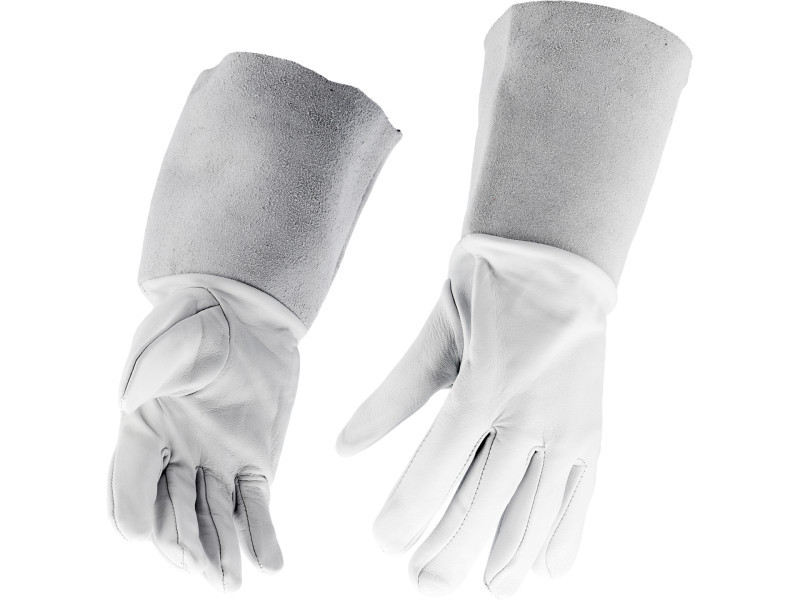 Welding gloves type B. Made of two types of natural leather. Soft grain leather combined with the appropriate material joining technique guarantees significantly greater freedom and dexterity compared to type A gloves. Recommended for TIG welding.