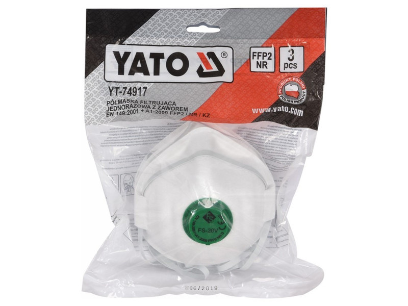 Ensure the highest level of safety with filtering half masks YT-74917. Their ergonomic shape and FFP2 protection class guarantee comfort and effectiveness in demanding work environments.