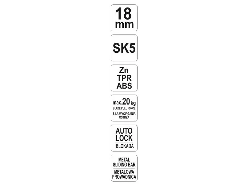 Additionally, it is equipped with the "auto lock" system, whichóry protects the blade from accidental ejection or retraction during operation, withstanding forces up to 20N. Thanks to the "auto lock" system, the knife is perfect for cutting thick materialsów or in narrow gaps where there is a risk of the blade getting stuck.