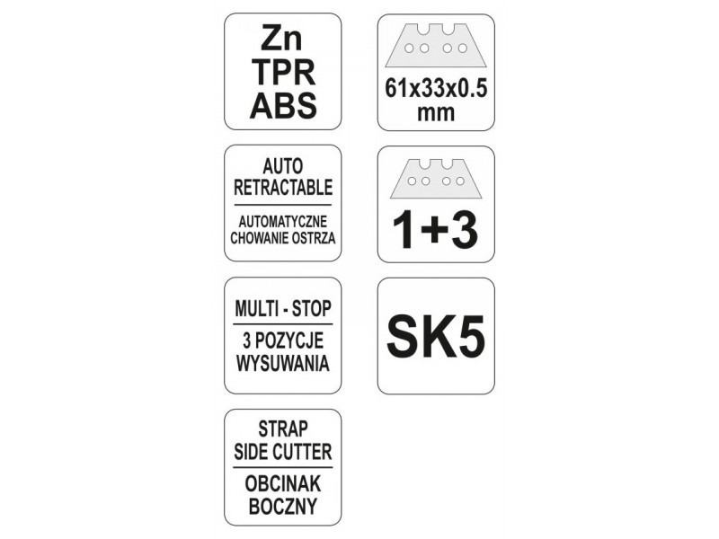 • Features: automatic blade retraction, three-step blade extension, side cutter