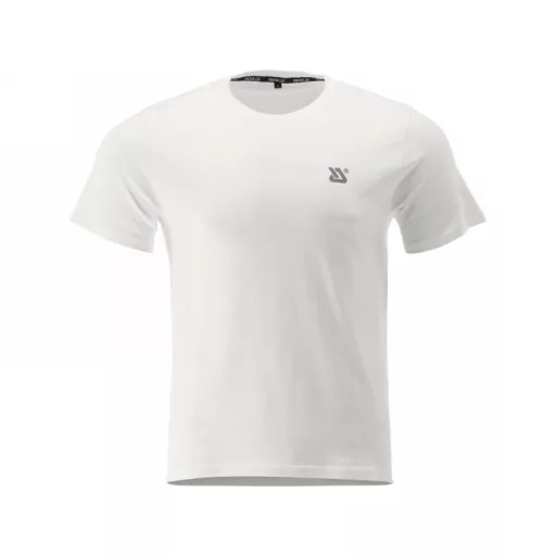 BASIC series T-shirt made of 180 g/m2 cotton jersey knit fabric. A traditional T-shirt fabric of 100% cotton with a higher grammage. Joining and finishing of the material are overwhelmingly durable and reliable overlock stitching. Weight in t-shirts. The vast majority of t-shirts on the market are between 100 and 200 g/m2. The cheapest ones are the lightest. T-shirts in the range of 100 to 120 g/m2 are thin enough to be see-through. The range from 130 to 150 g/m2 is very popular in chain stores, which place the greatest emphasis on low price. They are not suitable for printing. The range of 160 to 180 g/m2 are non-transparent T-shirts, on which the columnar structure characteristic of jersey can be seen with the naked eye. They are suitable for all kinds of marking from printing to embroidery. The range from 190 to 200 g/m2 is usually found in T-shirts from the premium brand segment. Those with good eyesight will easily notice the columnar structure characteristic of jersey. They are suitable for all kinds of marking. They are also the most tear-resistant and hold their cut the longest among the aforementioned.