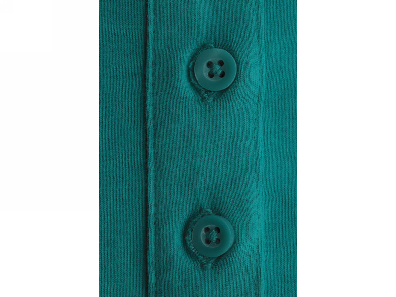 A traditional tshirt jersey knit, it is more pleasant to the touch than the two-ply pica knit popularly used in polos. Sometimes pica shrinks unevenly after washing, making it difficult to maintain the perfect cut. High-weight jersey is a guarantee of comfort and good looks. The combination of collar, welt and button placket is an unconventional fleece look and the comfort of a quality T-shirt.
