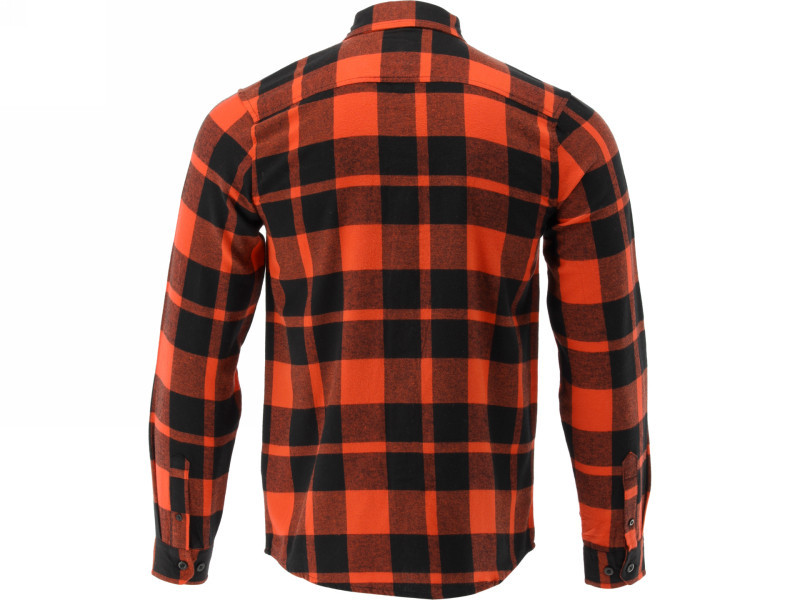 Flannel shirt with two chest pockets in a distinctive check pattern made of 100% cotton with a weight of 170 g/m2. Crease-resistant draped fabric does not cause irritation, is extremely pleasant to the touch, breathes perfectly, shows better thermal properties than a traditional t-shirt of similar weight. Sewing techniques and cut were chosen to emphasize the lightness of the shirt with the skin-pleasing draped fabric. A single seam was used in areas that are not prone to tearing, but which may adversely affect the stiffness of the cut. Double stitching was used in areas exposed to tearing and where the fabric works hardest with our movements. The long joints of the fabric are reliable overlock stitching.