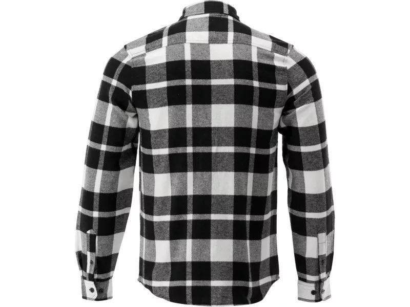 Flannel shirt with two chest pockets in a distinctive check pattern made of 100% cotton with a weight of 170 g/m2. Crease-resistant draped fabric does not cause irritation, is extremely pleasant to the touch, breathes perfectly, shows better thermal properties than a traditional t-shirt of similar weight. Sewing techniques and cut were chosen to emphasize the lightness of the shirt with the skin-pleasing draped fabric. A single seam was used in areas that are not prone to tearing, but which may adversely affect the stiffness of the cut. Double stitching was used in areas exposed to tearing and where the fabric works hardest with our movements. The long joints of the fabric are reliable overlock stitching.