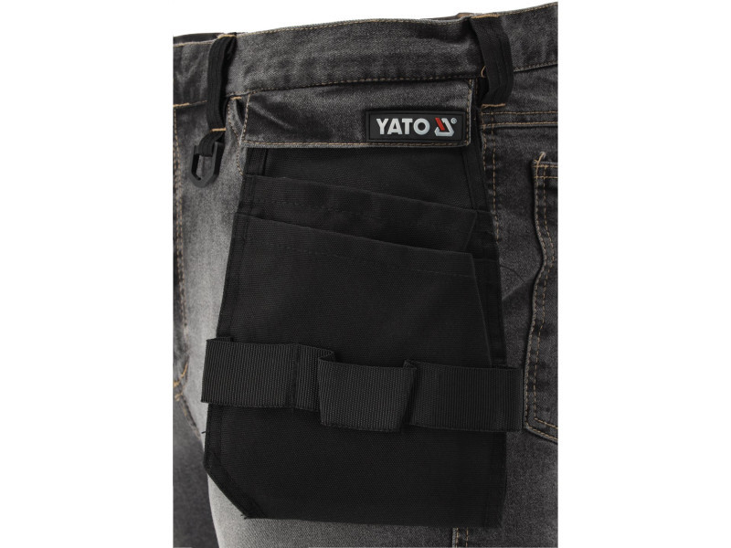 - seven belt loops and two eyelets for a snap hook with keys or for securing tools e.g. YT-74009