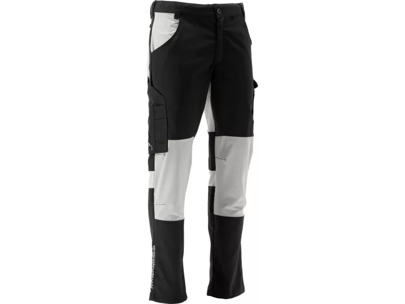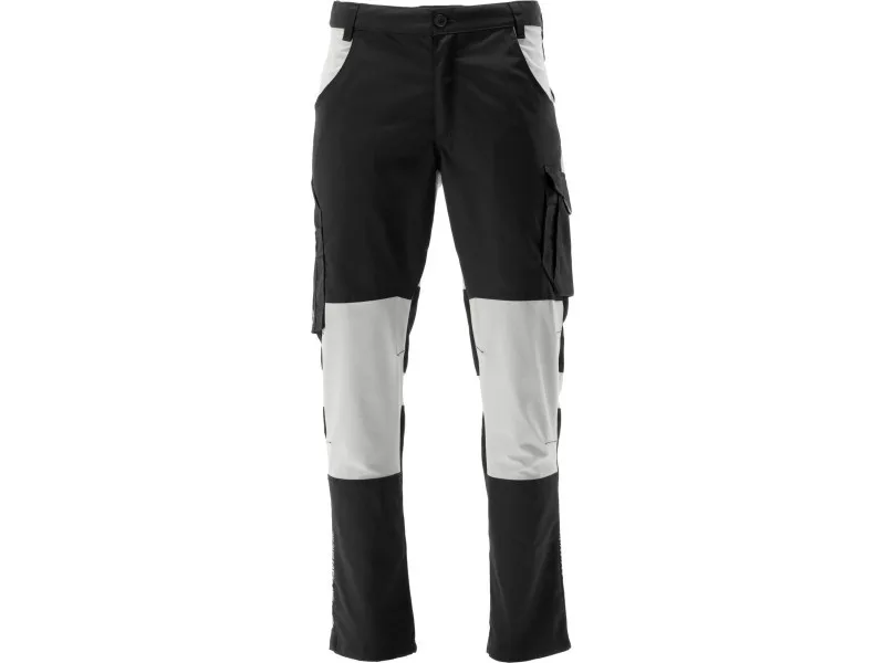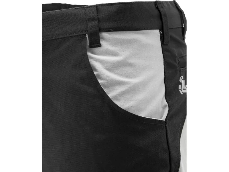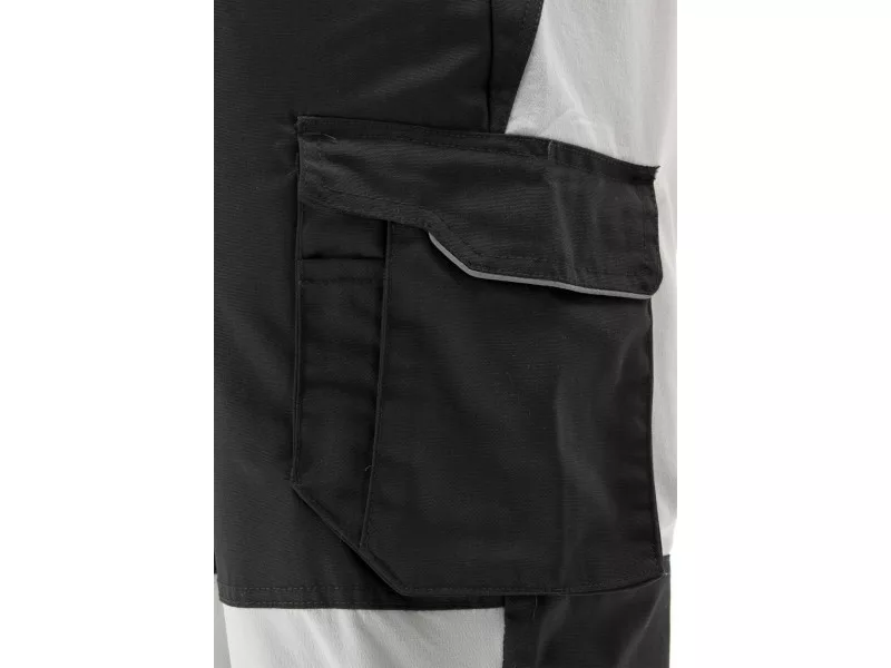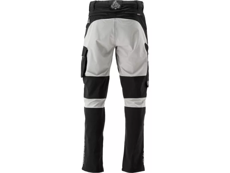 Work trousers from the SERWAL series with inserts made of 4way stretch stretchable material. Eleven pockets, including a multifunctional pocket with a hidden zipper, perfect for a wallet or phone. The possibility of shortening the trousers by about 4 cm with the help of snap buttons. Numerous seams in areas most prone to tearing.