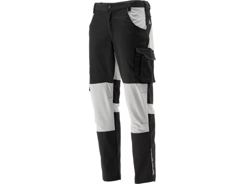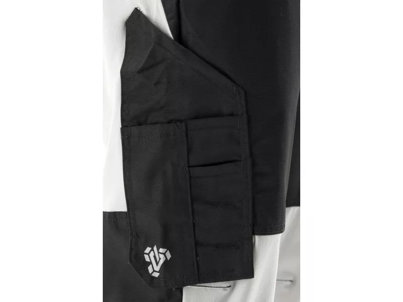 Work pants from the SERWAL series with inserts made of 4way stretch elastic material. Eleven pockets, including a multifunctional pocket with a hidden zipper, perfect for a wallet or phone. The pants can be shortened by about 4 cm using snap buttons. Numerous reinforcements in areas most prone to tearing.