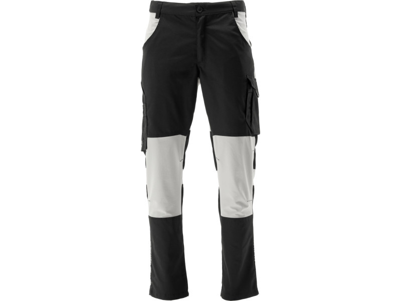Work trousers from the SERWAL series with inserts made of 4way stretch stretchable material. Eleven pockets, including a multifunctional pocket with a hidden zipper, perfect for a wallet or phone. The trousers can be shortened by about 4 cm using snap buttons. Numerous reinforcements in areas most prone to tearing.