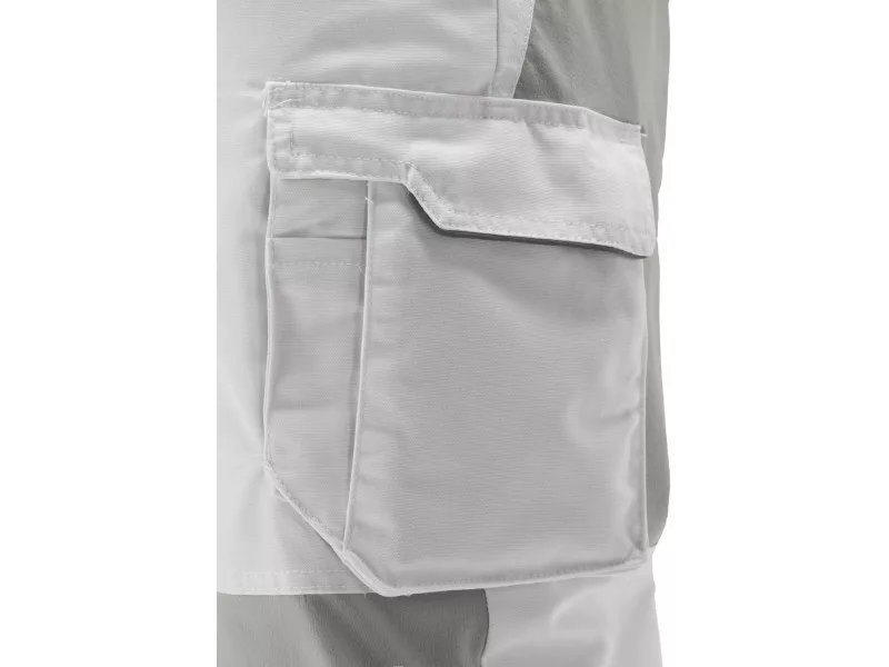 Work trousers from the SERWAL range with inserts in 4way stretch fabric. Eleven pockets, including a multifunctional pocket with a concealed zip, ideal for a wallet or phone. Possibility to shorten the trousers by approximately 4 cm with sewn-in snap buttons. Numerous stitches in the areas most vulnerable to tearing.