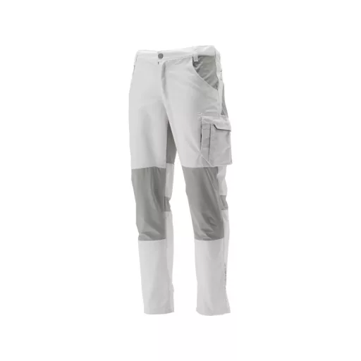 Work trousers from the SERWAL range with inserts in 4way stretch fabric. Eleven pockets, including a multifunctional pocket with a concealed zip, ideal for a wallet or phone. Possibility to shorten the trousers by approximately 4 cm with sewn-in snap buttons. Numerous stitches in the areas most vulnerable to tearing.