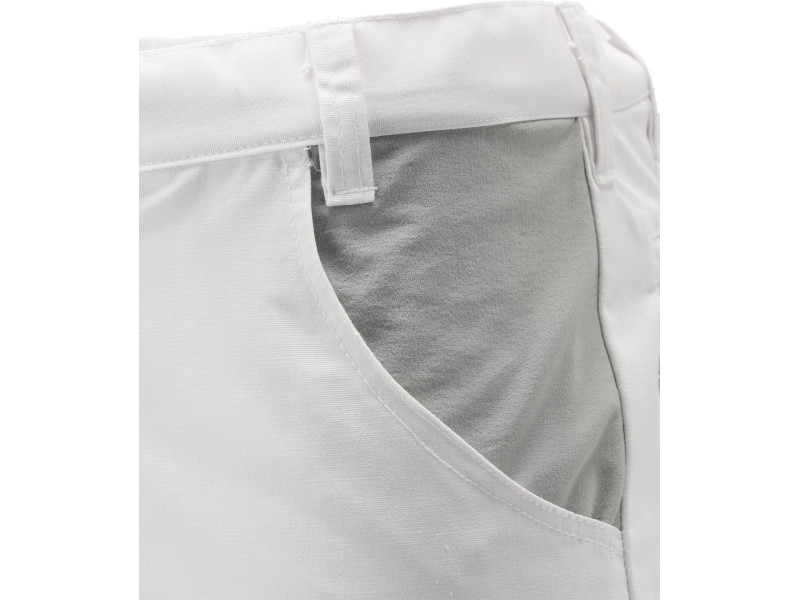 Work trousers from the SERWAL range with inserts in 4way stretch fabric. Eleven pockets, including a multifunctional pocket with a concealed zip, ideal for a wallet or phone. Possibility to shorten the trousers by approximately 4 cm with sewn-in snap buttons. Numerous stitches in the areas most vulnerable to tearing.