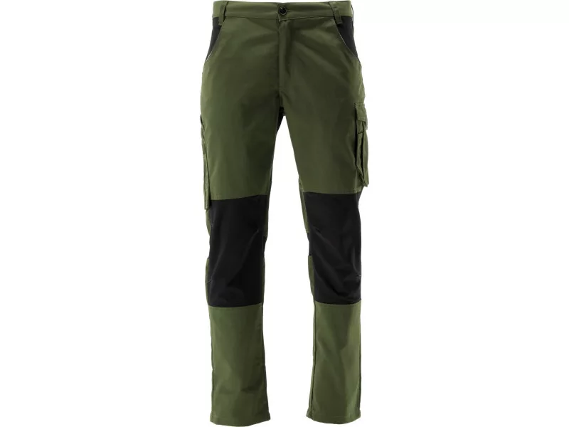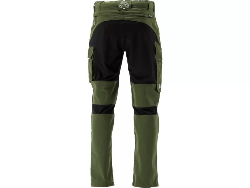 Work trousers from the SERWAL series with 4-way stretch inserts. Eleven pockets, including a multifunctional pocket with a hidden zipper, perfect for a wallet or phone. The trousers can be shortened by approximately 4 cm using the sewn-in snap buttons. Numerous topstitches in areas most prone to tearing.