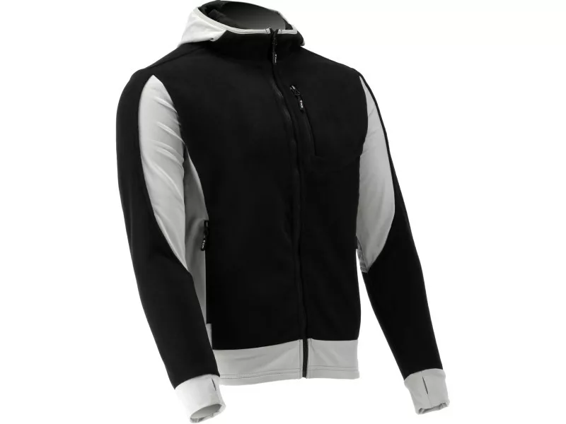 - Stretchy 2-way stretch fabric on the sides, under the arms, and partially on the bottom of the sleeves almost eliminates the discomfort of traditional fleeces during work, e.g. when twisting the torso or working with arms above the head. It also provides better air circulation, reducing sweating, especially under the arms.