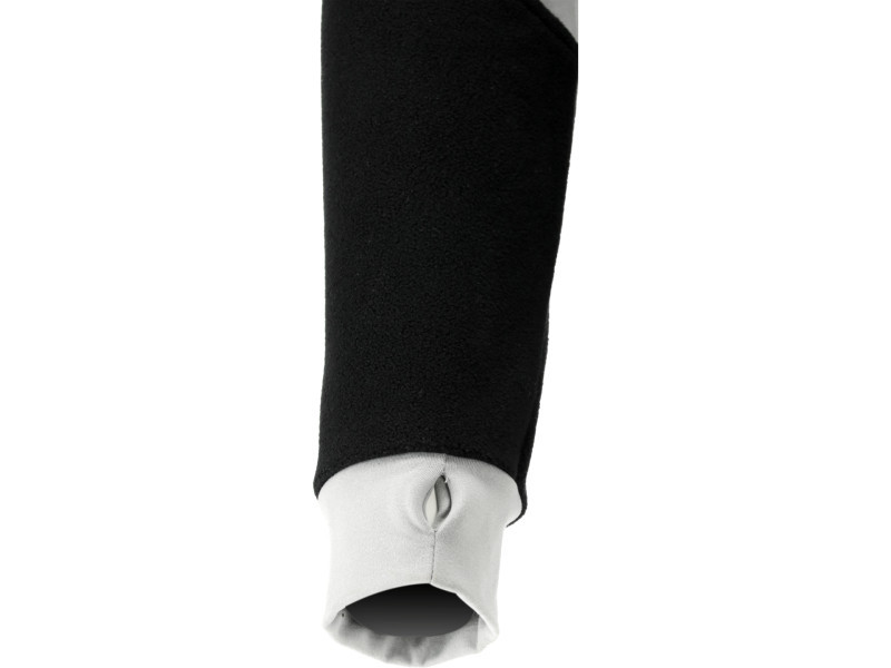 The main material is durable polyester with a characteristic fleece structure that effectively retains body heat. The insert material is stretchy, breathable 2-way stretch fabric. It does not restrict movement and is pleasant to the skin.