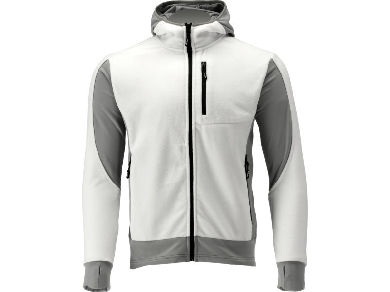 Hooded fleece sweatshirt with functional zones and five pockets. It combines features of workwear with the comfort and freedom of movement known from outdoor clothing.