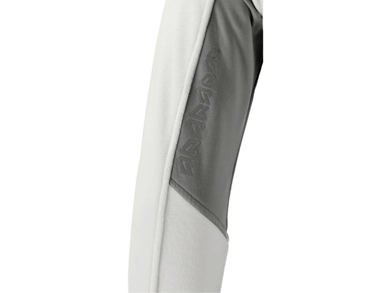 The main material is durable polyester with a characteristic fleece structure, which effectively retains body heat. The insert material is stretchable, breathable 2-way stretch fabric. It does not restrict movement and is pleasant for the skin.