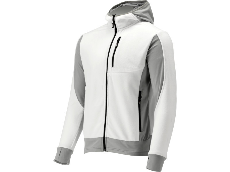 - Stretchable 2-way stretch fabric on the sides, under the arms, and partially on the bottom of the sleeves almost eliminates the discomfort of traditional fleeces, e.g. when twisting the torso or working with arms above the head. It also provides better air circulation, reducing sweating, especially under the arms.