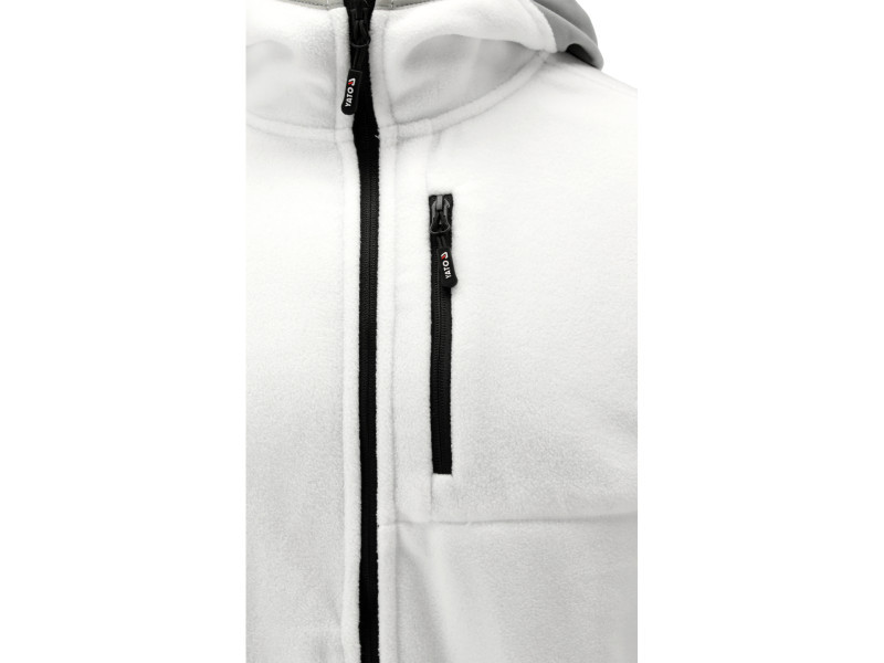 Hooded fleece sweatshirt with functional zones and five pockets. It combines features of workwear with the comfort and freedom of movement known from outdoor clothing.