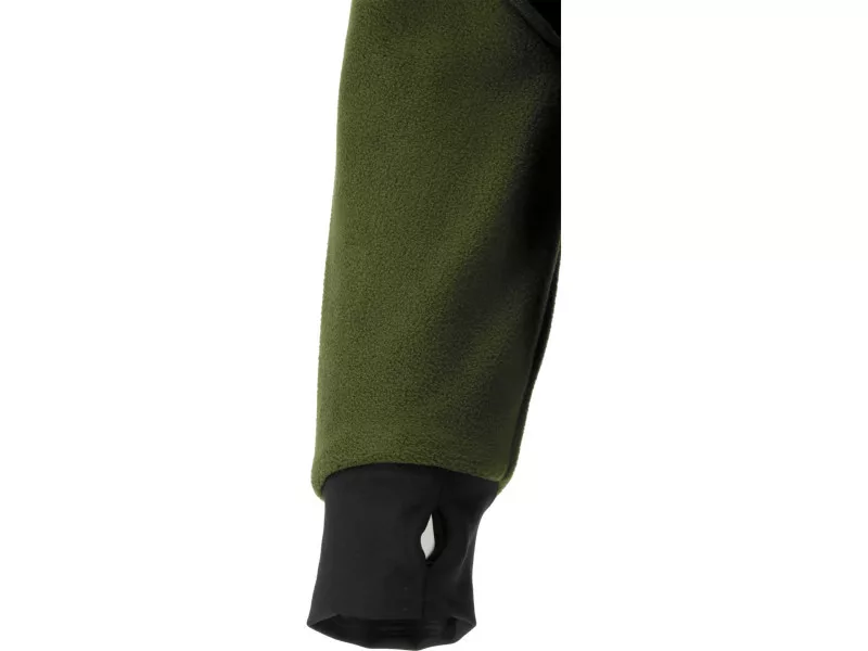 The main material is durable polyester with a characteristic structure typical for fleece, which effectively retains body heat. The insert material is stretchy, breathable 2-way stretch fabric. It does not restrict movement and is pleasant to the skin.