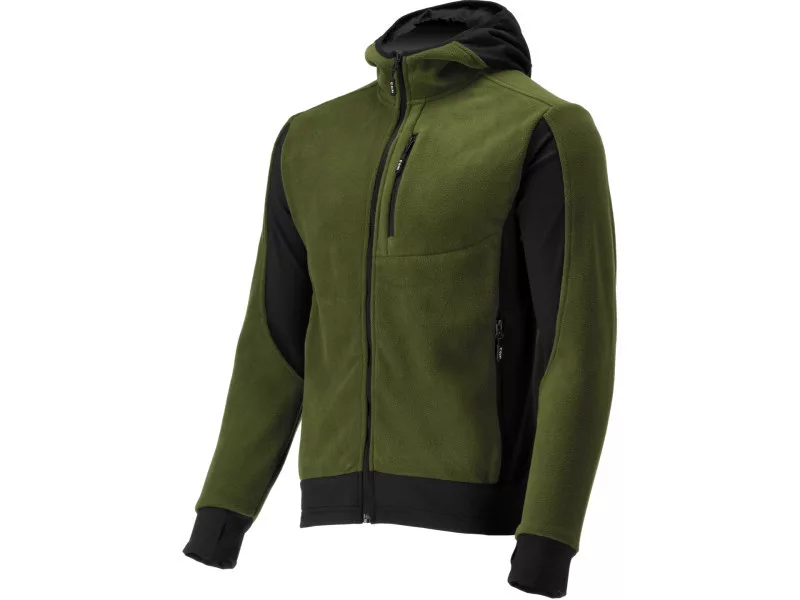 Polar hoodie with functional zones and five pockets. Combines features of workwear with the comfort and freedom of movement known from outdoor clothing.