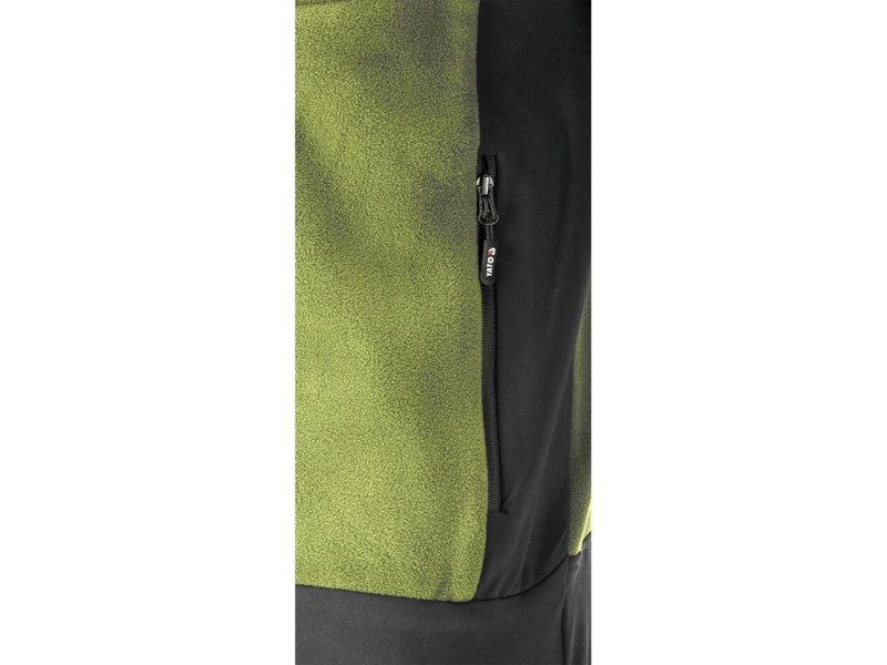 The main material is durable polyester with a characteristic structure typical for fleece, which effectively retains body heat. The insert material is stretchy, breathable 2-way stretch fabric. It does not restrict movement and is pleasant to the skin.