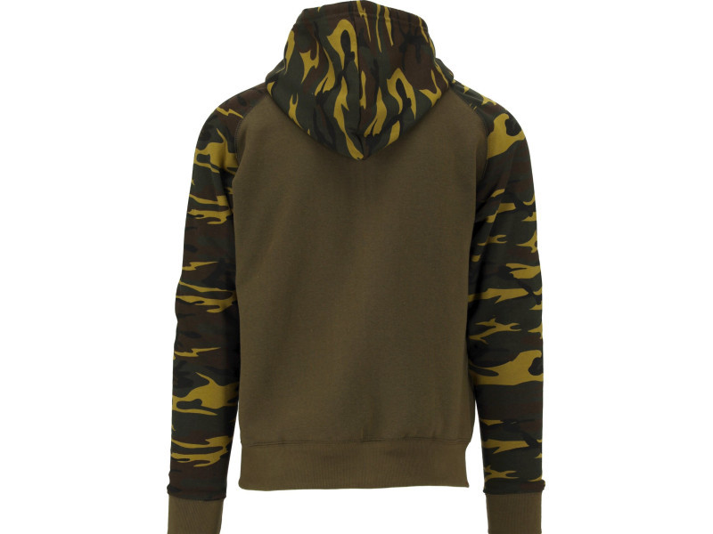 Hooded sweatshirt with two open pockets around the waist. The material is quite thick and warm cotton with a polyester blend. Cotton as a natural material is very pleasant to the touch, at this weight provides optimal thermal comfort both in spring and autumn. The addition of polyester strengthens the fiber, thereby improving the material's resistance to tearing.