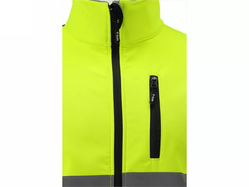 The Oriolus series warning softshell jacket is certified workwear designed for work in conditions requiring increased visibility and protection against adverse weather conditions. The model is recommended for road, construction, infrastructure, and service work carried out in vehicle traffic zones and anywhere where the good recognition of the worker's silhouette and comfort of work in the field are crucial.
