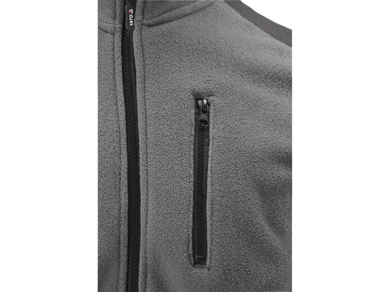 Thick fleece sweatshirt with three pockets and additional reinforcements made of abrasion-resistant fabric on the elbows and shoulders.