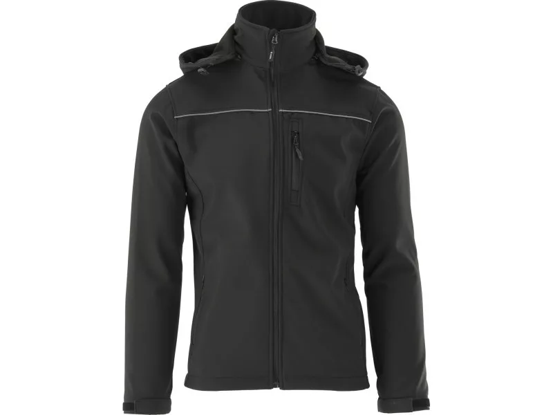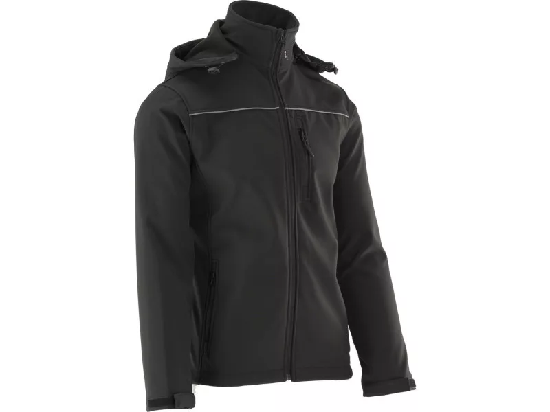 Softshell jacket with three fastened with a waterproof zipper & nbsp; pockets and with a detachable hood. The material is a modern three -layer and light polyester fabric with the addition of spandex with a special structure of microotwars, which block the penetration of water drops inward and at the same time allow sweat evaporation in the form of water vapor outside the material. The jacket perfectly maintains the body's warmth with comfortable air circulation and will successfully replace a heavy sweatshirt with hardly breathable fleece. The middle layer of laminate made of thermoplastic polyurethane will provide water resistance even during moderate rain. Basic data: material: 96% polyester, 4% spandex weight: 320 g/m² work organization: pocket with a waterproof zipper on the left breast two pockets with a waterproof zipper in the area of the waist in the area of the waist. Waterproof 8000 mm (m² of material withstands the pressure of a water pole 8 m high - 8000 mm) breathability 3000 mvp (about 3000 g of water/sweat will evaporate from 1 m² of material outside within 24h) Instant sleeves finished with cuffs with Velcro closure adjustment width at the bottom of the jacket with a blockage with a blockage The combination of comfort of use appreciated by users of ski clothing with the functionality of work clothing meets the requirements of Regulation (EU) 2016/425 for work clothing and category. Water resistance: The parameter so far most often used in ski clothing expresses the resistance of the m² of material to the pressure of a millimeter of water pole. 0 - 1500 mm - almost zero water resistance, work in dry conditions 1500 - 5000 mm - water resistance for light rain and delicate snow 5000 - 10,000 mm - water resistance for moderate rain and snow 10,000 - 15000 mm - water resistance to heavy rain and snow without a large wind Breathability: In other words, a couple of permeability means the ability of the material to lead sweat in the form of steam outside the material. The higher the parameter, the more effective the air circulation. Values between 2000 - 5000 MVP are a compromise between maintaining body warmth and the comfort of working in moderate physical activity, e.g. when working at a construction site.