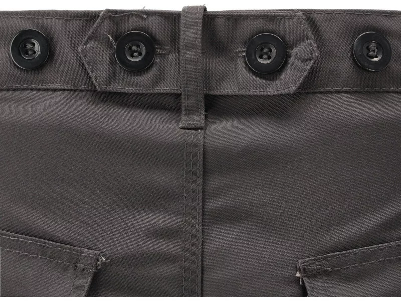 Working pants with nine pockets, including six with a Velcro fastener and special pockets for nutrients. The main material is a mixture of cotton with polyester in the right proportions. This solution allows you to use the strengths of both materials, including Increased tear resistance and good air circulation. Triple seams were used for connections of the material in the most exposed places to tear. Basic data: material: 35% cotton, 65% polyester weight: 267 g/m² work organization: below the belt at the front multi-function pockets, including two main pockets, two sewn pockets with a Velcro fastener with material with material with reinforced resistance to abrasion and an additional sewn pocket with a flap fastened with Velcro on the left leg, a large pocket with a flap, fastened with Velcro on the left leg sewn in a textile loop, e.g. on a hammer on the right leg, a narrow pocket made of material with reinforced resistance to abrasion, e.g. on a wallpaper knife On the back below the waist, two large pockets with a flap, fastened with Velcro, half -trimmed with material with reinforced resistance to abrasion at the waist at the front of the eyelabist with keys at the back of the belt at the back of the Velcro loop, e.g. on a rolled cable From fabric resistant to abrasion for penetrational inserts, e.g. 74595 Additional information: triple seams in places exposed to tear, fastened with zipper and button in the belt adjustment width width at the waist with buttons meet the requirements of regulation (EU) 2016/425 for work clothing 1st category.