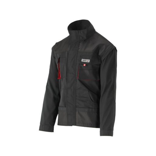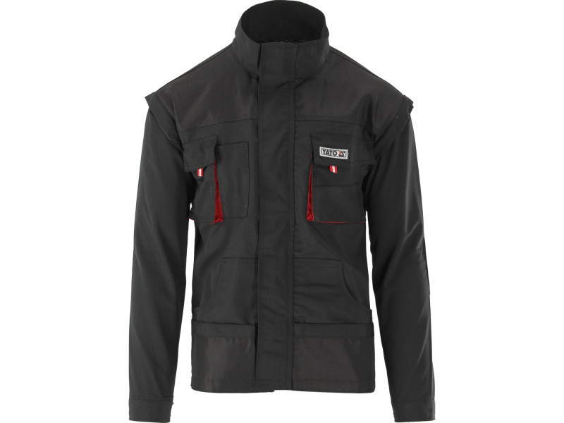 Work sweatshirt with eight pockets, detachable sleeves, ventilation under the armpits and numerous additional fabric resistant to abrasion fabric in places most exposed to damage. The main material is a mixture of cotton with polyester in the right proportions. This solution allows you to use the strengths of both materials, including Increased resistance to tear and good air circulation: basic data: material: 35% cotton, 65% polyester weight: 275 g/m² work organization: reinforced pocket with a Velcro fastener on the left breast pocket with a Velcro fastener and two narrow pockets on the right Two large pockets in the waist area Two reinforced pockets with a Velcro fastener in the area of the belt Additional information: double seams in places exposed to tear additional shells from fabric resistant to abrasion Oxford 600D, including on elbows, shoulders and pockets fastening zipper fastening , protected against windproof windproof ventilation under the armpit with a slider, detached sleeves ended with flexible cuffs, width adjustment at the bottom of the sweatshirt with buttons meets the requirements of Regulation (EU) 2016/425 for work clothing and category.