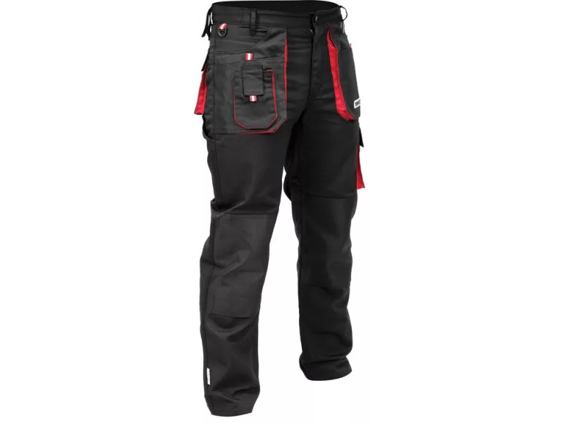 Work trousers with nine pockets, including six with Velcro fastening and special pockets for knee pads.