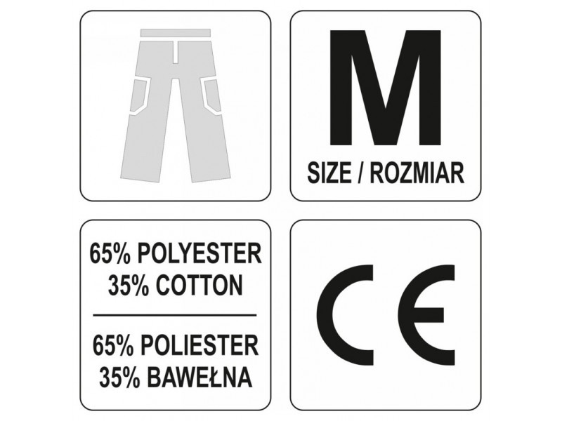 Working pants with five pockets, including three with a Velcro fastening and special pockets for penetrates. The main material is a mixture of cotton with polyester in the right proportions. This solution allows you to use the strengths of both materials, including Increased tear resistance and good air circulation. Triple seams were used for connections of the material in the most exposed places to tear. Basic data: material: 35% cotton, 65% polyester weight: 240 g/m² work organization: below belt at the front two pockets made of material with reinforced resistance to abrasion on the left leg large pocket with a flap, fastened with Velcro below the waist below the waist two belt two Large pockets with a flap, fastened with Velcro, made of material with reinforced resistance to abrasion at the front of the front eyebone with keys at the back of the belt at the back Intended for nonsense inserts, e.g. 74595 Additional information: Triple seams in places exposed to tear, fastened with a zipper and button in the waist adjustment width with waist width with buttons in the waist on the waist on the sides. Sewn tight gum meets the requirements of regulation (EU) 2016/425 for clothing working and category. & nbsp;